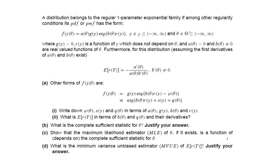 A Distribution Belongs To The Regular 1 Parameter Chegg Com